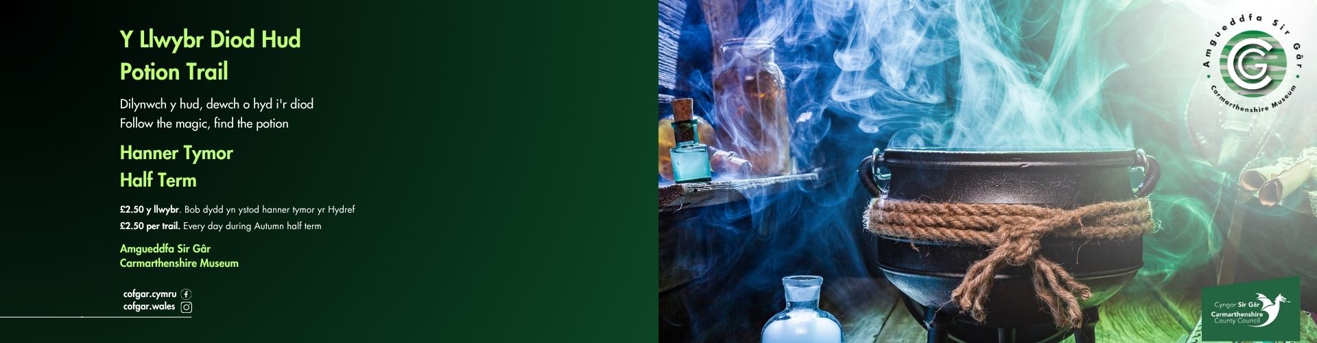 Join the Potion Trail at Carmarthenshire Museum this October half-term. Hunt for missing ingredients, complete magical recipes and win a prize!