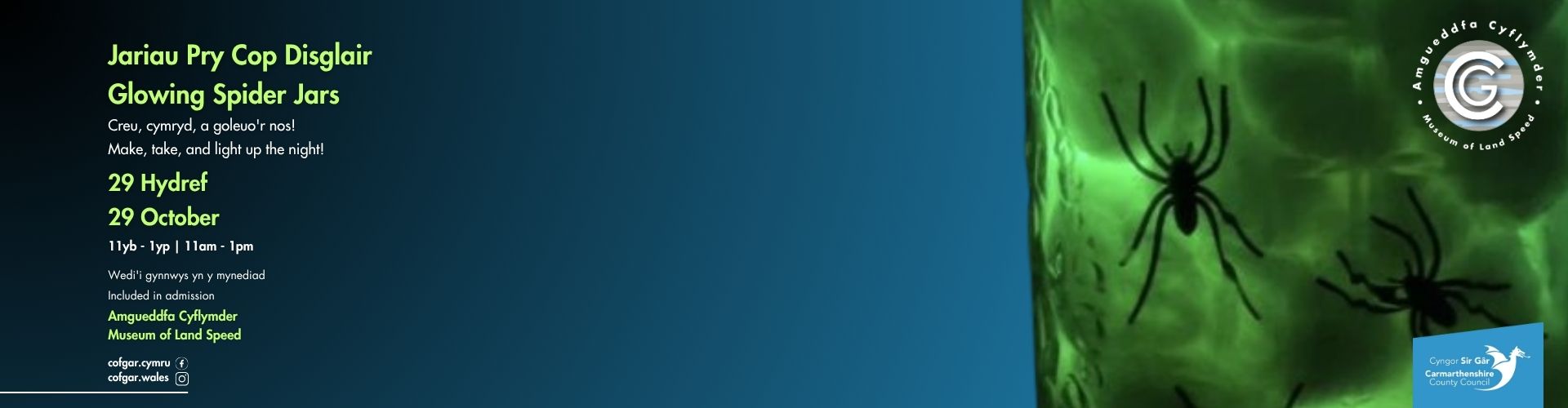 Get crafty this Halloween at the Museum of Land Speed in Pendine! On Wednesday 29 October from 11am to 1pm, children can make glowing spider jars to take home. A fun, family-friendly half-term activity included in the cost of admission.